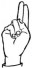 На ћирилици написано ДАНИЛО ДИНУЛОВИЋ састоји се из 15 слова [?]. Исписано ћириличном једноручном азбуком за глувонеме: